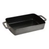 Die gusseiserne Auflaufform in farbenfrohem Kirschrot überzeugte bereits weltbekannte Spitzenköche. Mit dieser vielseitig einsetzbaren Auflaufform können Gerichte zuerst auf dem Herd angebraten werden und anschließend im Backofen gratiniert werden. Dank der ansprechenden Optik eignet sich die runde Form auch zum Servieren der Gerichte. Die Form verfügt über einen Durchmesser von 16 cm, eine Länge von 22 cm, eine Breite von 16,2 cm und eine Höhe von 5 cm. Das Fassungsvermögen beträgt 0,4 l bei einem Gewicht von 0,972 kg. Zwei praktische Seitengriffe erleichtern die Handhabung. Die gusseisernen Auflaufformen von Staub lassen sich platzsparend im Küchenschrank aufbewahren, da sie in den verschiedenen Größen stapelbar sind. Der praktische Küchenbegleiter kann auf allen gängigen Herdarten, einschließlich Induktionsherden, verwendet werden und eignet sich ideal für die Zubereitung im Backofen. Mit dieser hochwertigen Auflaufform aus robustem Gusseisen, das die Wärme speichert und gleichmäßig wieder abgibt, werden Ihnen köstliche gratinierte Gerichte gelingen.